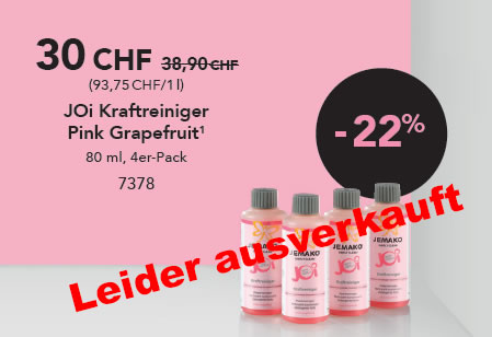 JOi, das sind „JEMAKO original ingredients“, also unsere bewährten Inhaltsstoffe, unsere originalen Reiniger-Rezepturen, konzentriert auf 80 ml. Angemischt mit Leitungswasser wird aus dem Konzentrat im Handumdrehen der bekannte 500 ml-Reiniger mit voller Reinigungsleistung. Das sorgt für mehr Platz im Putzschrank und schont gleichzeitig die Umwelt!