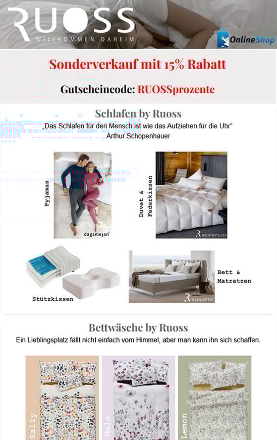 Dies ist ein Beispiel eines Newsletters für ROBERT RUOSS & CO. AG - Vorhang- und Bettwarenfachgeschäft, Schübelbach SZ.